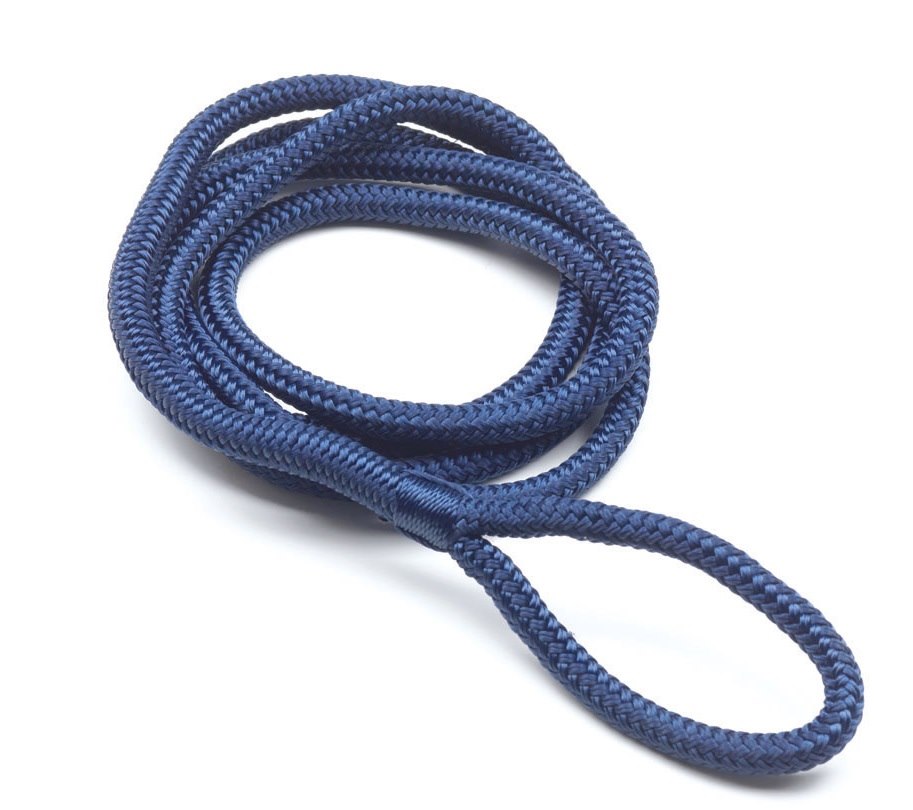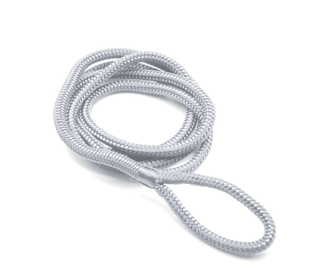 Cima in pliestere alta tenacità per fissaggio parabordi concchiello. Doppia treccia poliestere con occhio impiombato a mano.