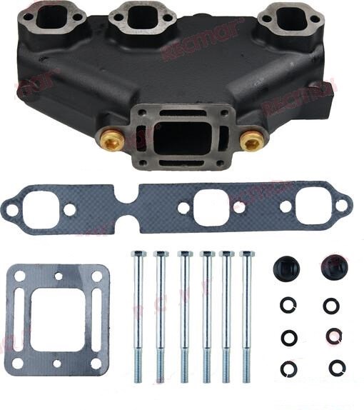 Collettore di scarico compatibile con codici originali Mercruiser 99746A17 - 99746A8 - 99746A3 per motori GM 4.3L & 3.8L V6 175, 185, 205, 229 & 262 (1985-02). Completo di guarnizioni e bulloni.