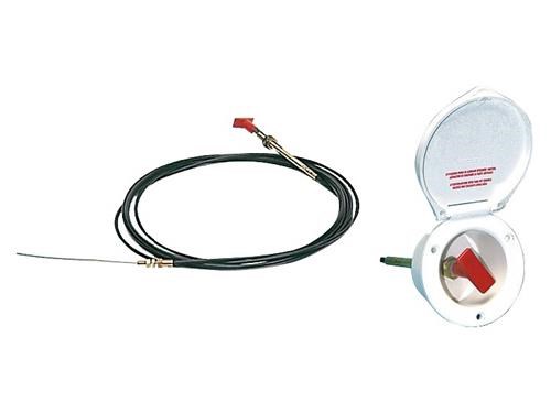 Comando flessibile a distanza, studiato per il funzionamento dello starter, chiusura a distanza di rubinetti benzina, azionamento estintori. Guaina in Eltex, mm5,5 filo interno inox 316, Ø mm 1,5, terminali completamente in ottone. Povvisto di uno speciale terminale autofilettante che permette di tagliare il flessibile a misura e poi intestarlo a mano con il terminale.