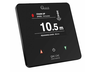 Ultimo nato della famiglia contacatena Quick. Il nuovissimo QNC CHC è uno strumento completo ed affidabile per azionare a distanza il salpa ancora e controllare la lunghezza della catena calata o salpata per mezzo del display grafico a colori.