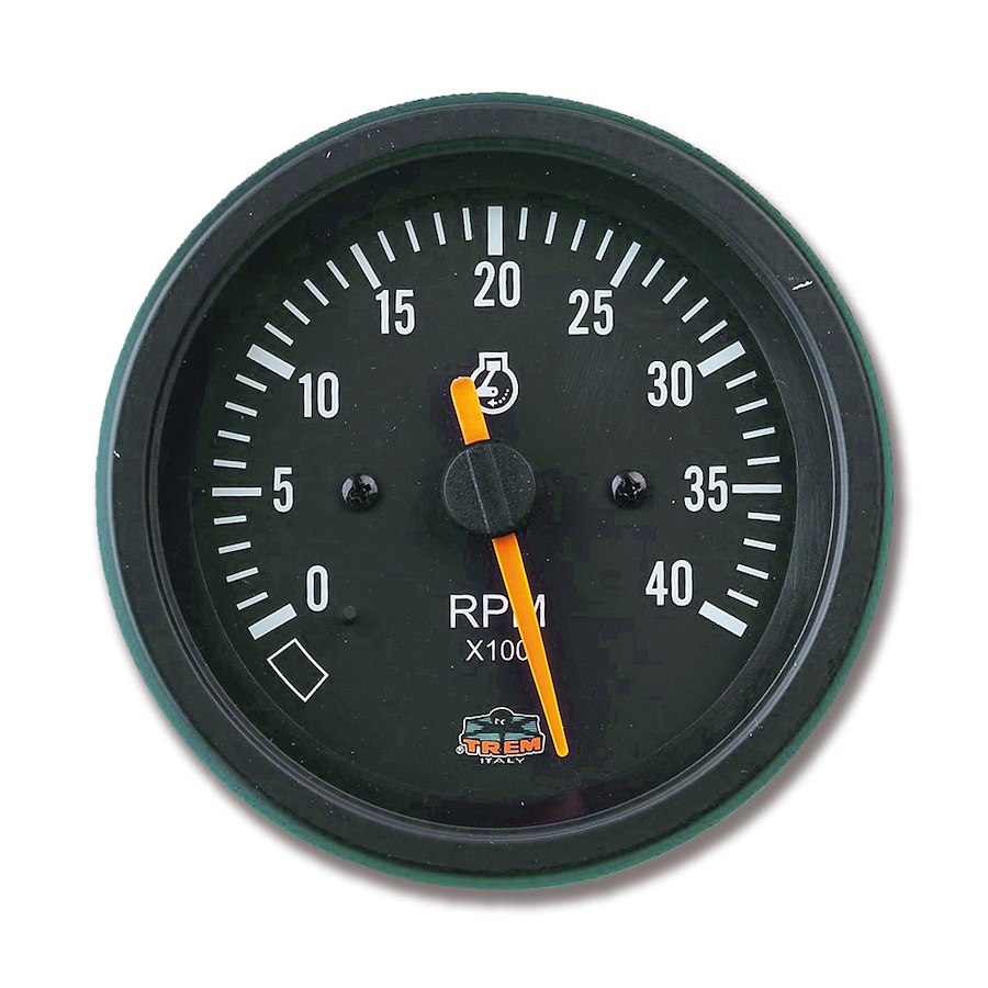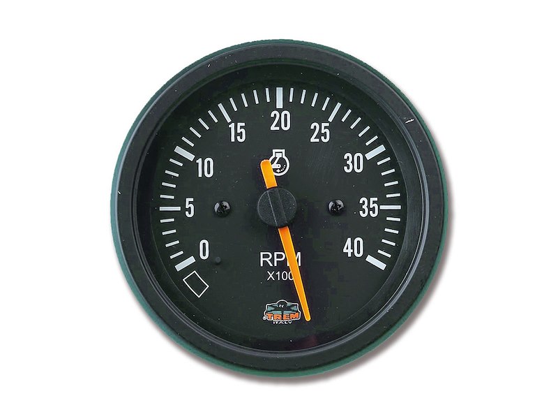 Contagiri, fondo colore nero. Scala da 0 a 4000 Rpm, indicato per motori diesel. Adatto a motori da 1 a 6 cilindri. Strumento retroilluminato. 12 Volt . Misure esterno 95, mm incasso 84 mm .