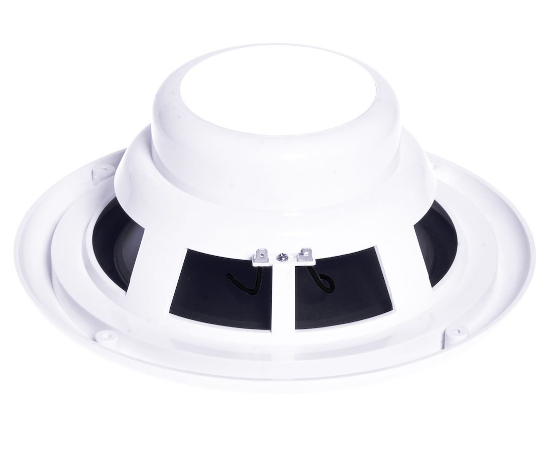 Coppia di casse stereo per uso nautico di alta qualità. Telaio in plastica ABS ad alta resistenza anti ingiallimento. Potenza 150 watt - 60 Hz-20 Hz. Impedenza 4 Ohms. Diametro 6,5" - 180 mm. - Profondità incasso 63 mm. - Foro da applicare 135 mm.