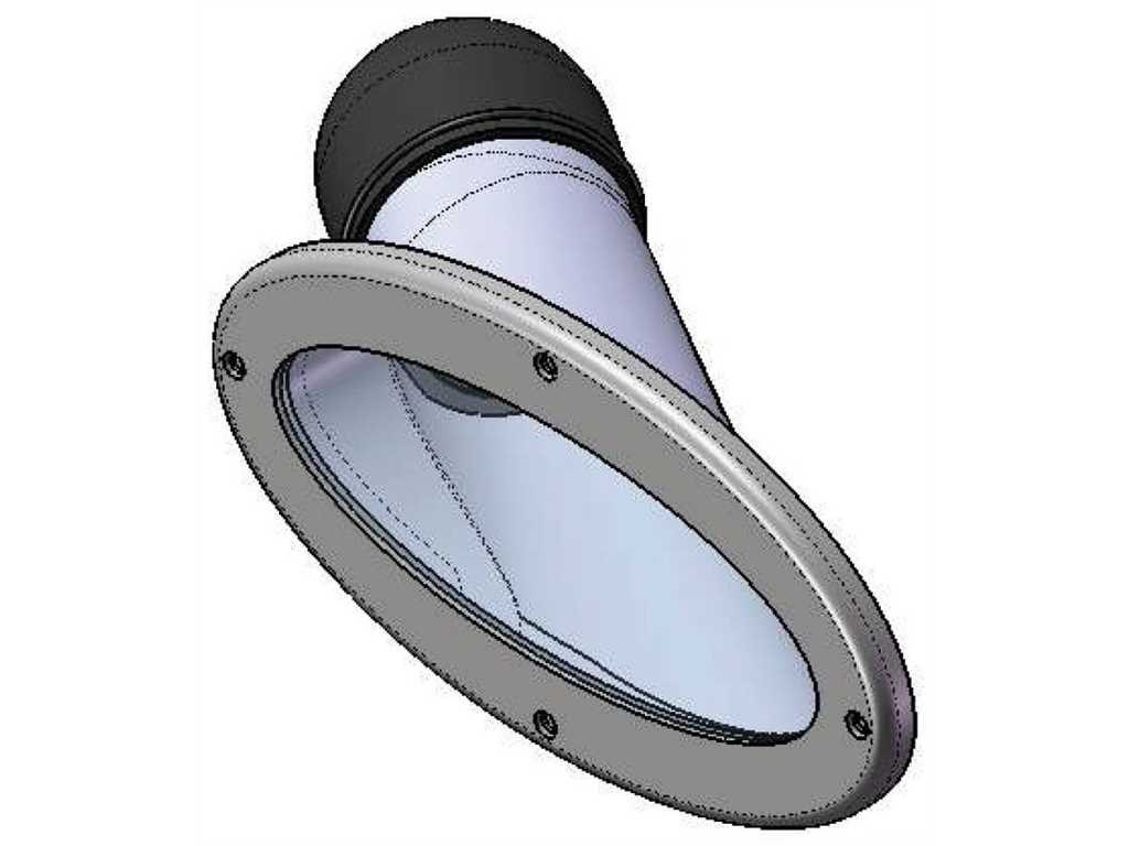 Fabbricati in acciaio inox AISI 316 lucidato a specchio. Lente di protezione frontale. Lampadina alogena con parabola dicroica.