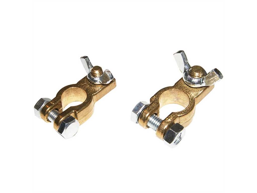 Confezione comprendente morsetto per polo positivo e morsetto per polo negativo.