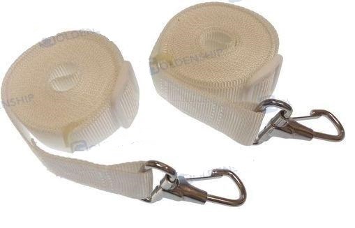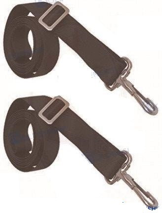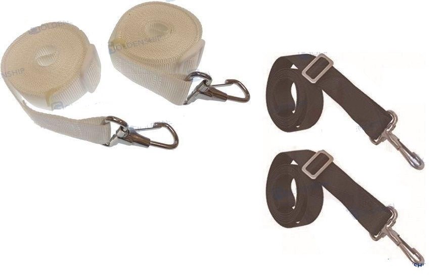 Coppia di tenditori provvisti di moschettoni e fibbie per registrare la lunghezza.