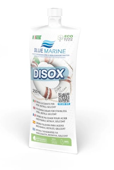 Blue Marine Disox. Crema Lucidante per acciaio Inox, metalli in genere e Gelcoat. Rilascia un velo di cera auto-lucidante che garantisce una protezione a lunga durata. Ridona brillantezza e protezione alle tue superfici.