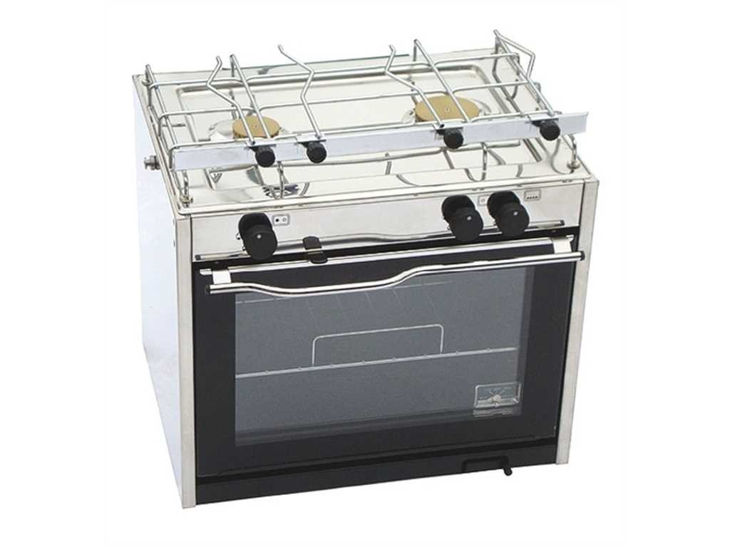 Caratteristiche: Due fuochi ad alta potenza - Barrette fermapentole - Supporto cardanico laterale - Termocoppie di sicurezza - Doppio cristallo anteriore - Termostato - Bruciatore dal forno centrale per una distribuzione ottimale del calore - Doppio vassoio estraibile dal forno per una facile pulizia.