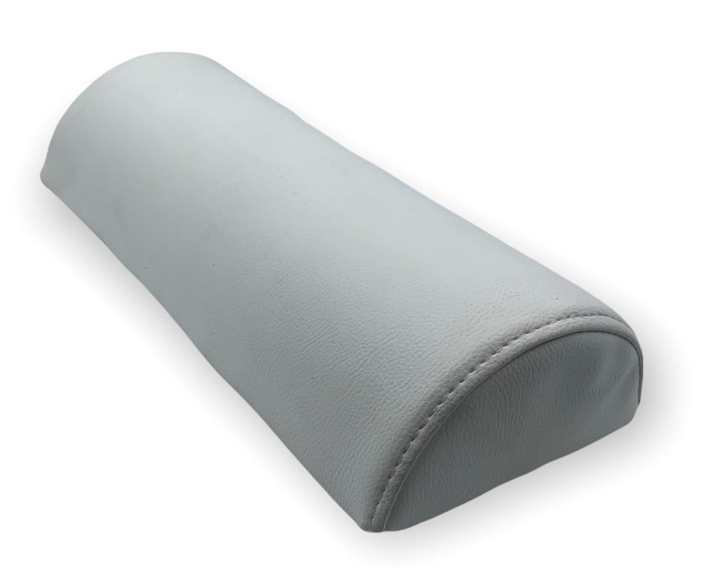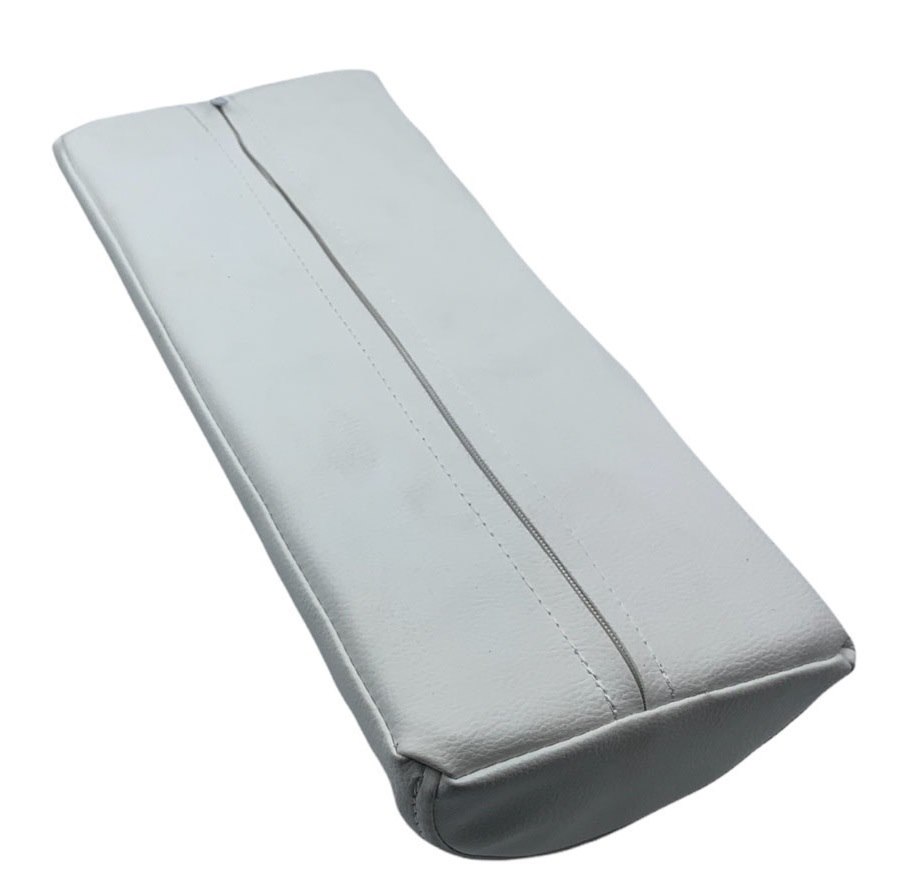 Cuscino a mezza luna in simil pelle. Interno in materiale espanso. Cerniera posteriore che lo rende scalzabile e lavabile. Colore bianco. Misure 40 x 17 x H 8 cm. .