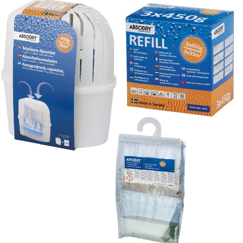 Il Deumidificatore ABSODRY è un dispositivo passivo che utilizza cristalli di sale per assorbire l'umidità in eccesso presente nell'aria, prevenendo la formazione di muffe e cattivi odori.