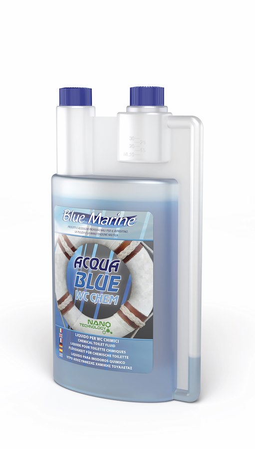 Blue Marine Acqua Blue è un ottimo disgregante per rifiuti organici e carta igienica. Elimina i cattivi odori. Riduce l'accumulo dei gas. Adatto per serbatoi di acque nere o acque grigie o per wc chimici. Applicazione: Svitare il tappo e premere la bottiglia sino ad ottenere nella vaschettina 75 ml di prodotto e versarlo nel serbatoio, aggiungendo anche 2 litri di acqua. Per ogni giorno d'uso del serbatoio, aggiungere 50ml di prodotto. Non contiene formaldeide .