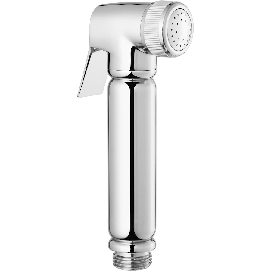 Doccetta modello Elegant costruita in ottone cromato. Attacco universale 1/2" maschio. Il getto di acqua può essere mantenuto aperto senza continuare a premere la levetta, ma semplicemente ruotandola.