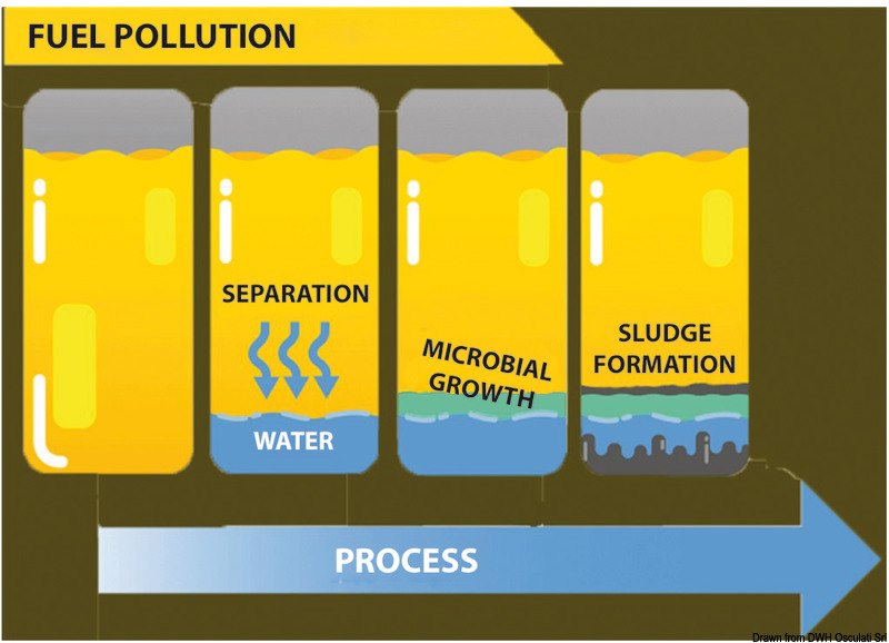 Battericida ECO-BACT H-Power per gasolio. L’inquinamento batterico del gasolio è un problema molto serio e complesso e ultimamente sempre più diffuso. A differenza delle “classiche morchie del gasolio” (paraffine, residui carboniosi e catrami), che vengono rese fluide dal Fastol e reintegrate nel combustibile, i fanghi batterici sono solubili solo in acidi. Basta qualche ppm di acqua per favorire lo sviluppo di tali batteri. I residui prodotti dalla colonia batterica si presentano sotto forma di mucillagini, alghe, muffe o filamenti, aumentano rapidamente e vanno ad occludere filtri e tubazioni provocando avarie e perfino l’arresto del motore. La loro proliferazione inoltre innesca processi di corrosione nel serbatoio. ECO-BACT H-Power è un biocida maggiormente potenziato nel suo principio attivo: pur mantenendo l’efficacia del formulato precedente, richiede dosi più ridotte con un costo di esercizio molto basso. È solubile sia in acqua sia nel gasolio e si concentra nella fase acquosa del gasolio, dove è maggiore la concentrazione della contaminazione. ECO-BACT H-Power può essere impiegato sia per bonificare un serbatoio già contaminato, sia come trattamento periodico di prevenzione e/o mantenimento.