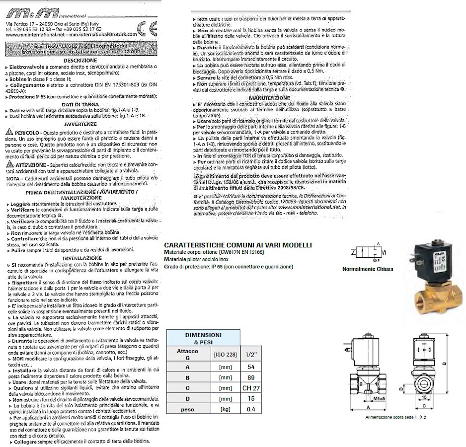 Elettrovalvola che consente l'utilizzo del wc collegato all'impianto idrico di bordo. Da inserire tra la pompa di carico ed il Wc in caso di di installazione di più WC con una sola pompa. Questa valvola funge anche da anti-sifone sul carico con Wc montato sotto il livello di galleggiamento.