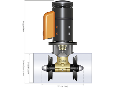 Elica di prua Quick BTQ 250 DP barca. Doppia elica in robusto materiale composito. Ideali per imbarcazioni da 14-21 m (45-69 ft). Carter di protezione per i teleinvertitori in robusto materiale composito. Riduttore in bronzo