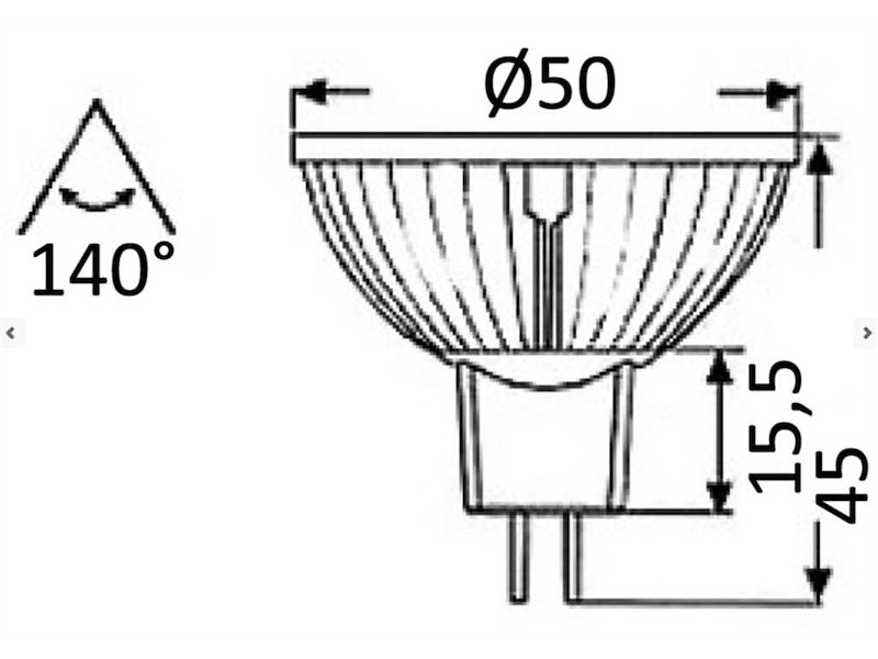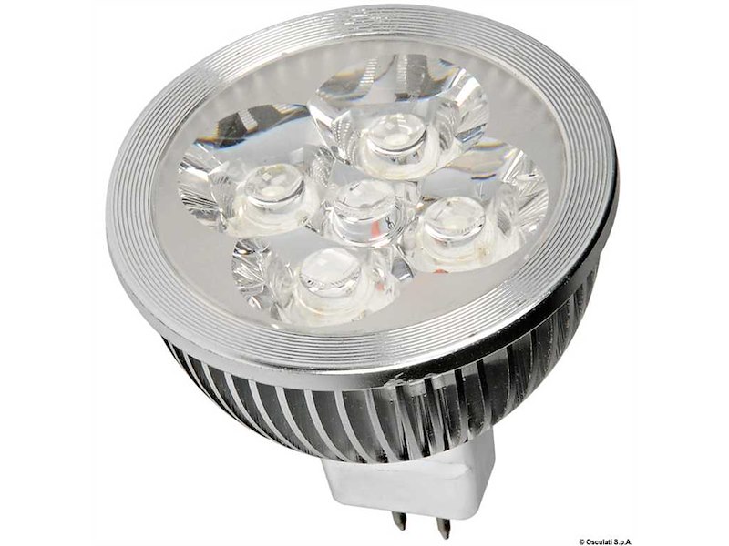 Lampadina Led tipo faretto a 4 LED HD. Potenza equivalente a una lampadina 35 W alogena. Tipo attacco MR16. 260 Lumen gradazione 6000K . Alimentazione 12 volt.