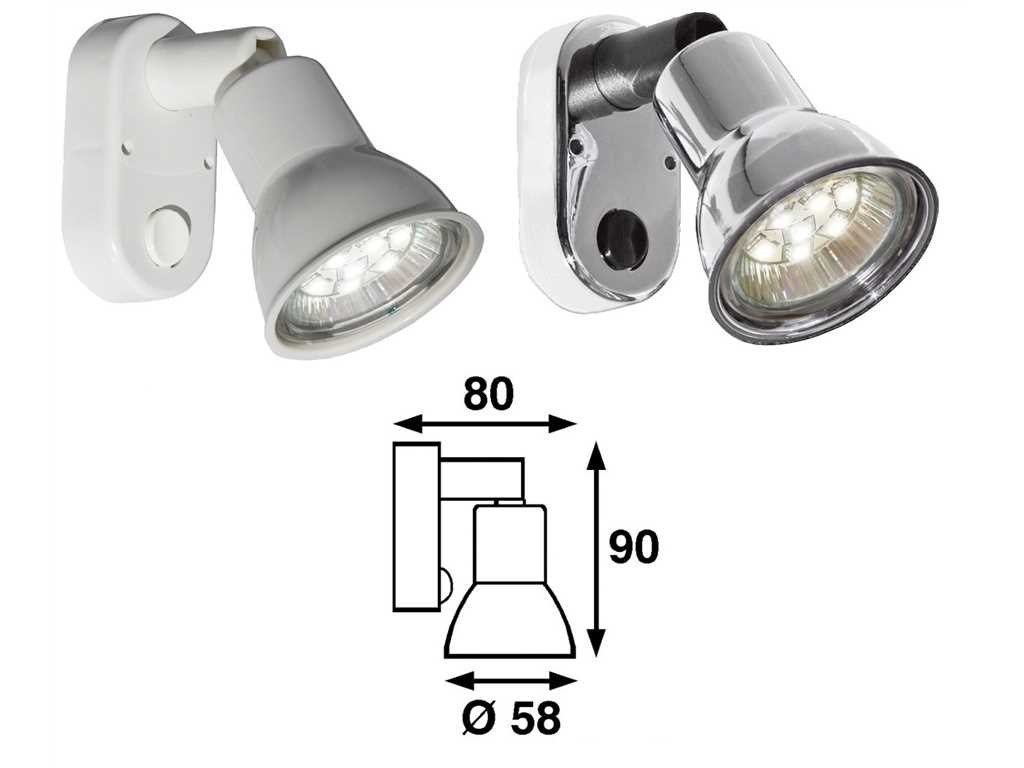 W 2,3, Lumen 200, luce riflessione colore >80, K 3000, angolo LED 120°, 10 LED di colore bianco.