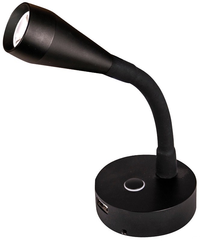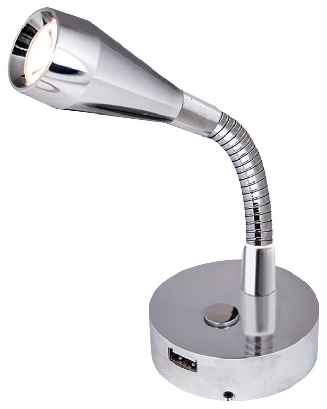 Completo di presa USB da 2 A. Interruttore touch con dimmer che memorizza l'ultima intensità luminosa scelta. Luce calda 3200K. Potenza 3 watt. Lumen 270. Alimentazione 12 volt.