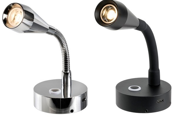 Faretto LED snodato con presa USB-C - alluminio cromato -