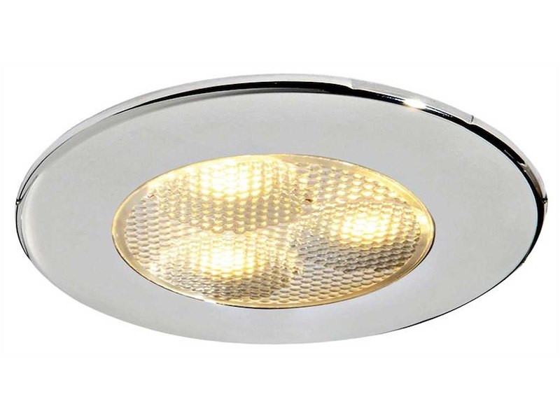 Plafoniera con doppio sistema di fissaggio: con viti nascoste o con molle interne inox. Stagne IP40 - IP65. Dimensioni: Ø 70 mm. esterno - Ø 51 mm. incasso - 22 mm. profondità incasso.