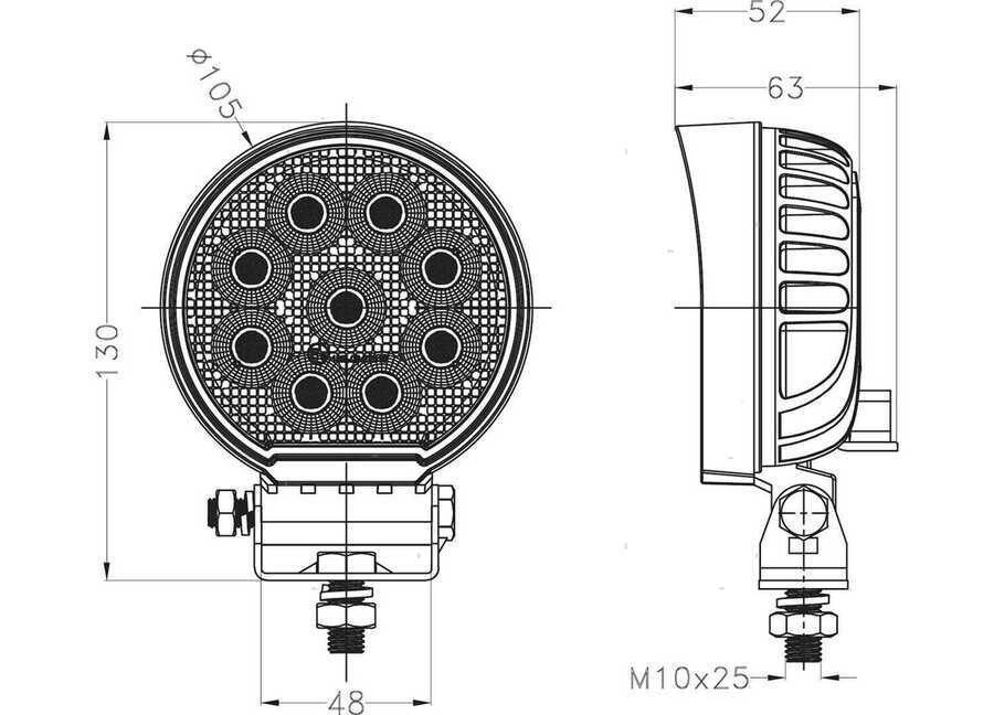 Alimentazione 9-32V. Potenza 27 watt. Lumen 2160. Luce bianca 6000°K. Carcassa colore bianco.