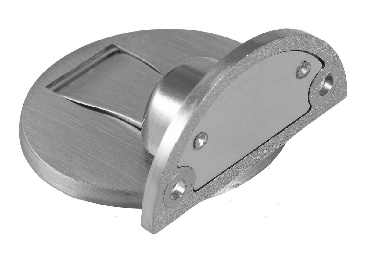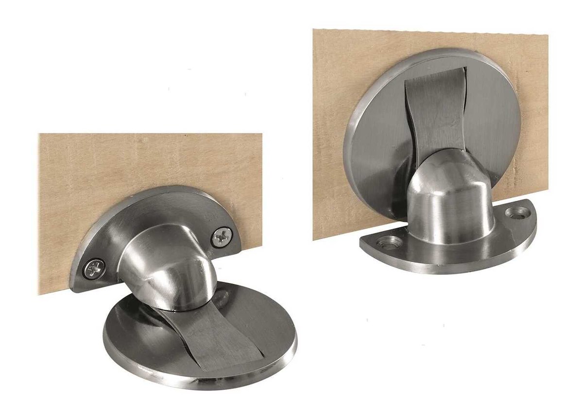 Scrocco a pavimento: Ideale per porte che devono restare aperte a filo parete, riducendo l'ingombro visivo.