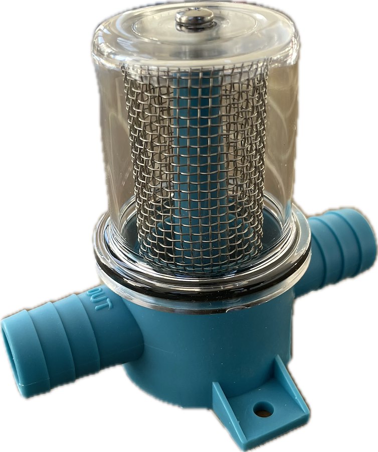 Filtro acqua, costruito in plastica con elemento filtrante in acciaio inox.