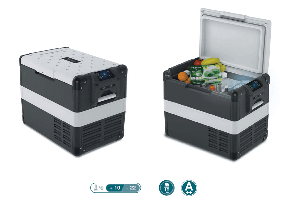 Nuova gamma di frigoriferi portatili Vitrifrigo, completi di pannello di controllo digitale, display a LED ad alta luminosità, funzione di protezione batteria e presa caricabatteria USB.