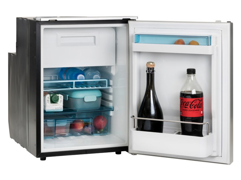 Frigorifero versatile e compatto. Facilmente installabile in qualsiasi imbarcazione o veicolo. Previsto di comodo scomparto congelatore removibile se non necessario per estendere la capacità frigoEquipaggiato da compressore Huayi, con comodo comando di controllo interno per regolare la temperatura e pannello porta in alluminio spazzolato anodizzato clean touch.