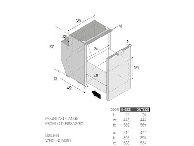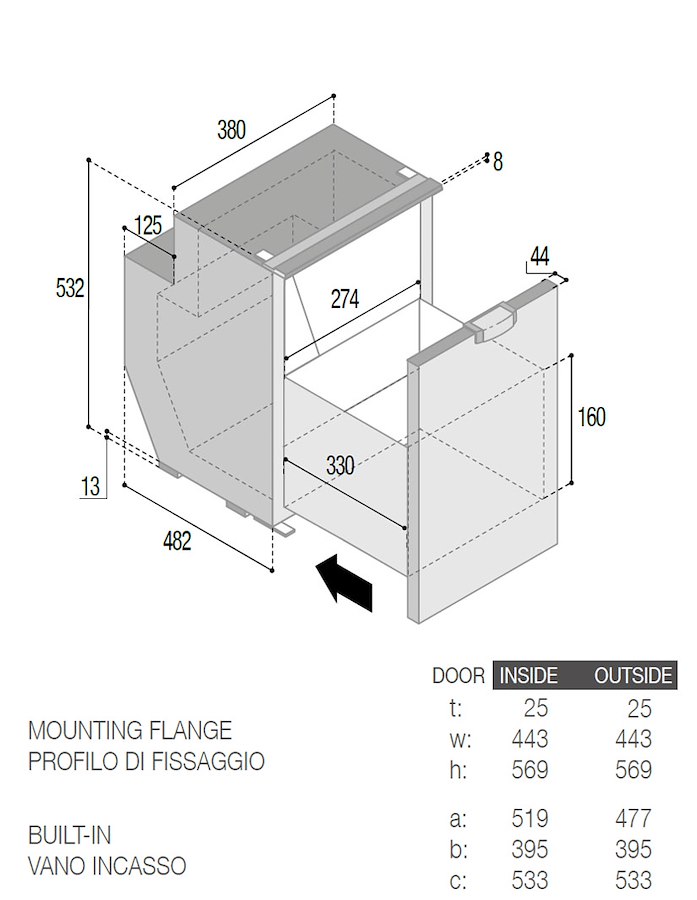- Dimensioni ( Altez. x Largh. x Profond. ): 532 x 380 x 515 ( + 42 mm. per lo sportello )