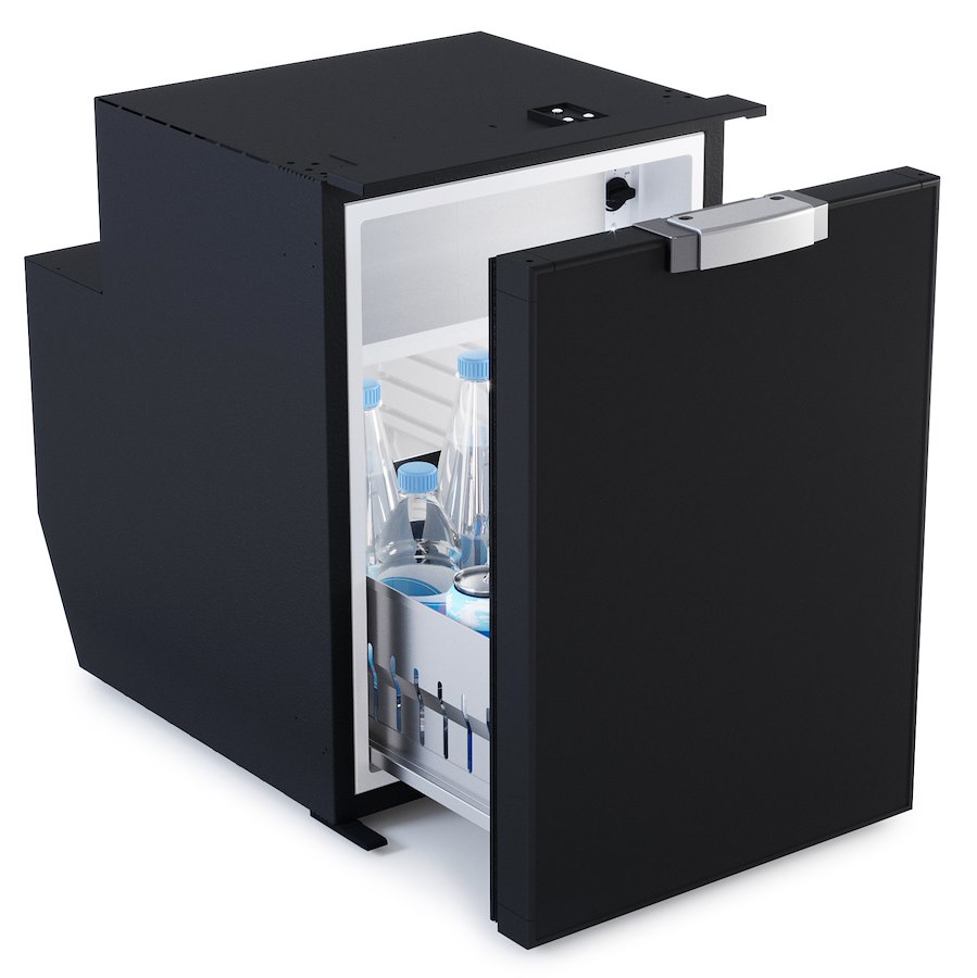 Frigorifero con unità interna Vitrfrigo C51DW. Apertura a cassetto. Capacità 51 litri ( Vano freezer 3,6 lt. ). Porta di colore nero. Alimentazione a 12/24 volt.