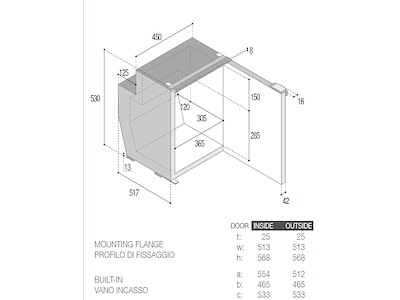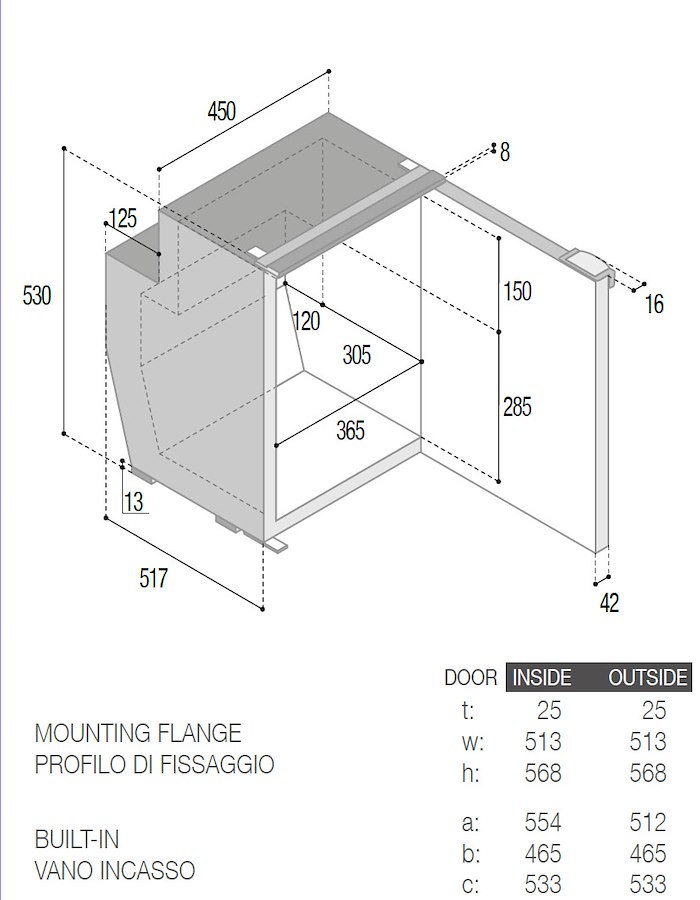 - Dimensioni ( Altez. x Largh. x Profond. ): 530 x 450 x 517 ( + 42 mm. per lo sportello )