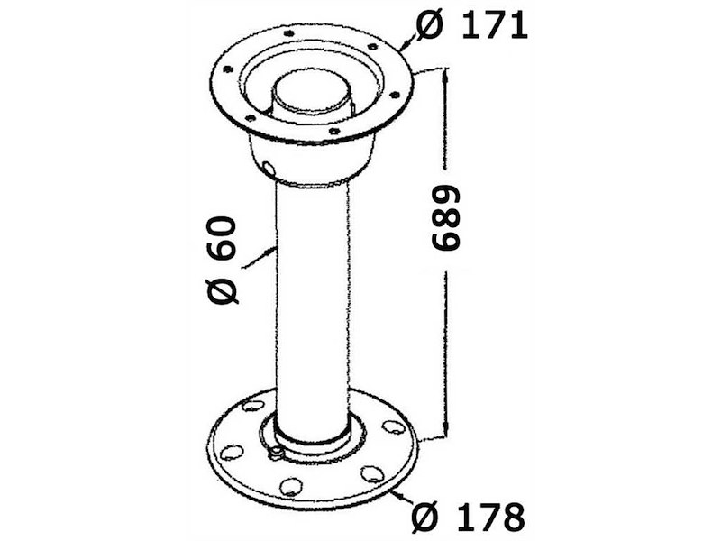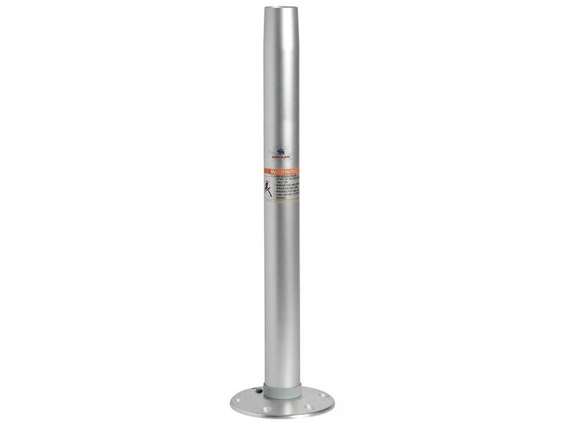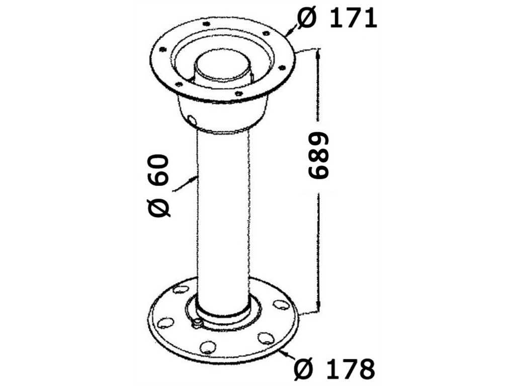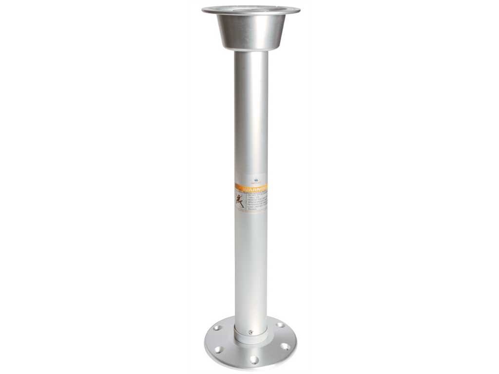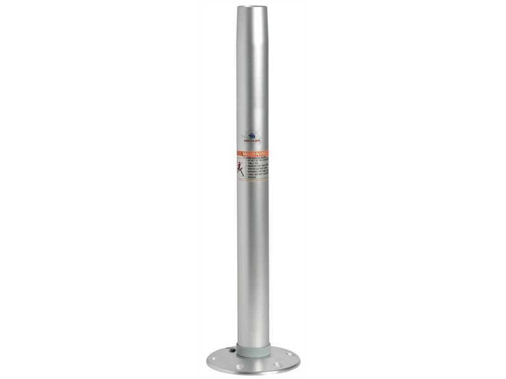 Gamba tavolo fabbricata in alluminio anodizzato. La colonna si avvita sulla base con ingegnoso sistema "Tread lock" estremamente stabile. La base si fissa al pagliolo senza incasso, con una sporgenza di soli 20 mm.
