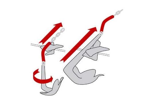 Giunto barca salpa ancora girevole in acciaio inox AISI 316. Gira automaticamente l'ancora nel giusto verso all'ingresso del musone. Adatto per ancore tipo Bruce, Force, Bull e Delta.