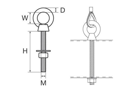 Golfare marini maschio con perno e dado. Costruito in acciaio inox lucidato a specchio.