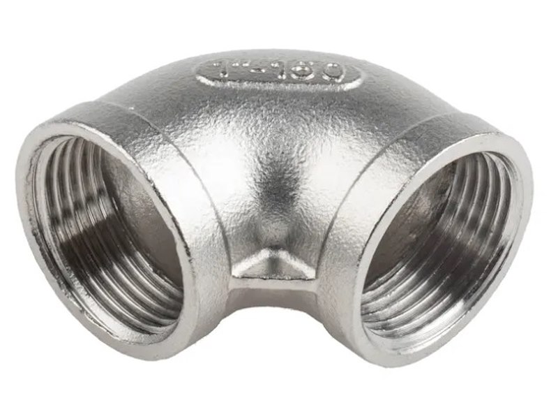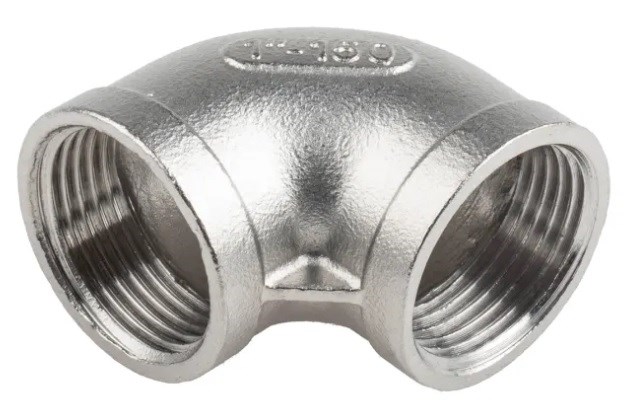 Gomito femmina/femmina in acciaio inox Aisi 316. Un gomito 90° femmina/femmina in acciaio inox è un raccordo utilizzato per connettere tubi o tubazioni in modo da cambiare la direzione del flusso del fluido.
