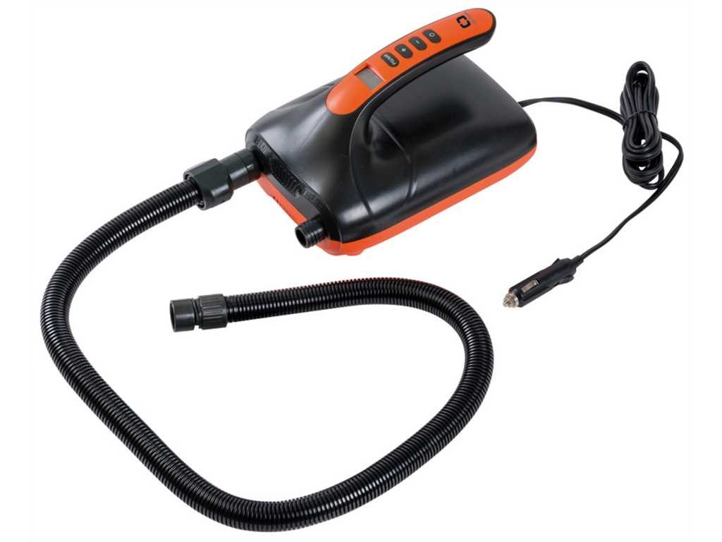 Gonfiatore elettrico, due funzioni gonfia esgonfia. Molto compatto e di facile trasporto grazie alla comoda maniglia posta sul lato superiore. Settaggio della pressione tramite controller digitale e display LCD. Dotato di presa accendisigari e raccordi inclusi.