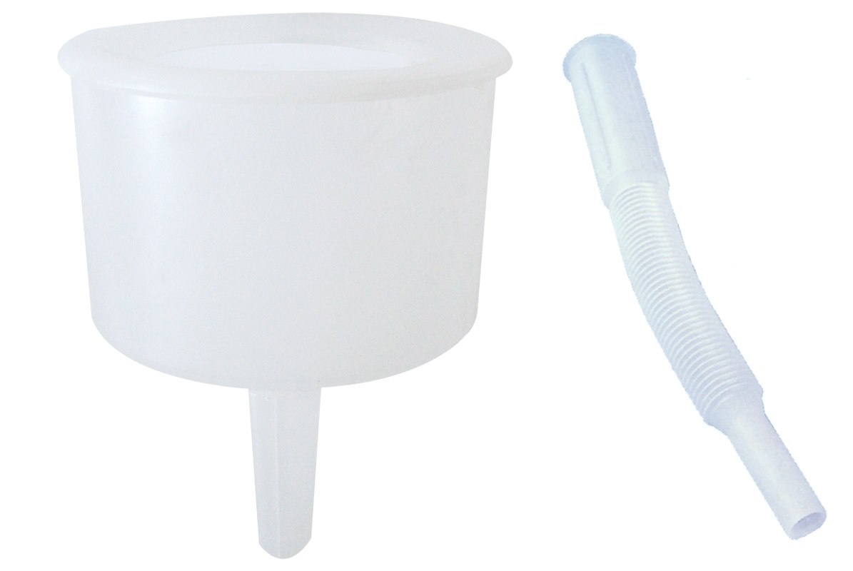 Imbuto con bordo antispruzzo e filtro e prolunga.