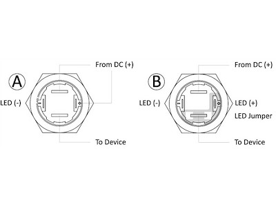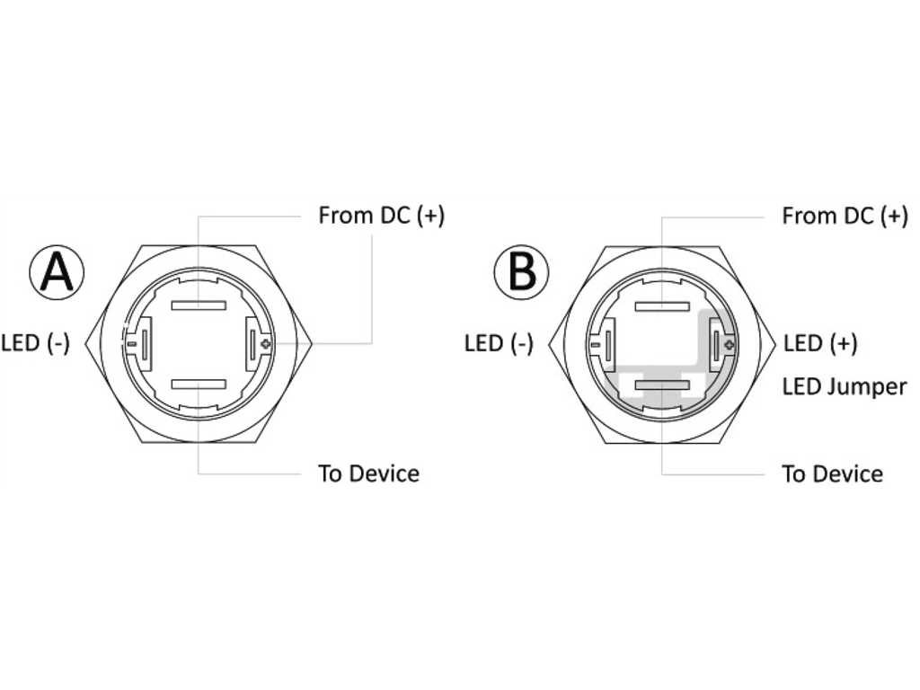 - Cavi collegati (Schema B): Corona LED accesa solo in "ON".