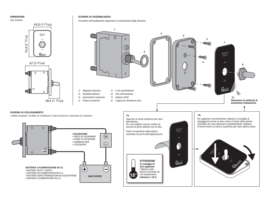 L’interruttore automatico magneto idraulico Quick per barca è una protezione amperometrica specifica per correnti continue. Interviene in caso di sovracorrente, interrompendo il circuito elettrico. Il riarmo della protezione è manuale. Può essere utilizzato fino a 80 Vdc.