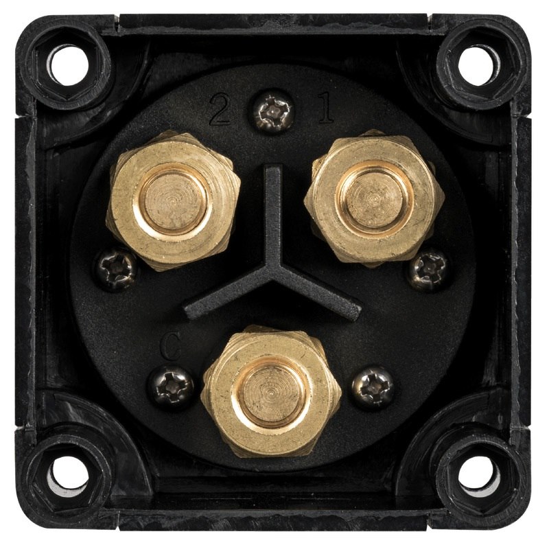 Interruttore/Deviatore Batterie 300A – OFF / 1 / BOTH / 2 Interruttore/deviatore per impianti elettrici, ideale per la gestione di due batterie. Permette di selezionare rapidamente tra batteria 1, batteria 2, entrambe in parallelo (1+2) o spegnimento totale (OFF). 🔧 Caratteristiche tecniche: ⚡ Corrente continua (intermittente): 300 A ⚡ Corrente continua (di picco 5 sec.): 450 A ⚡ Corrente massima (di spunto): 1000 A 🔄 Posizioni selezionabili: OFF / 1 / BOTH / 2 📐 Dimensioni: 69 x 69 x 75 mm 🛠️ Versione MKII – più compatta e robusta Ideale per barche a vela, motoscafi, gommoni e impianti elettrici nautici dove è necessaria una gestione sicura e flessibile delle fonti di energia.