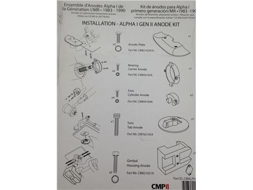 Kit anodi in alluminio per piede Mercruiser Alpha I Generazione II ( a partire dal 1991 ) . Completo di bulloneria.