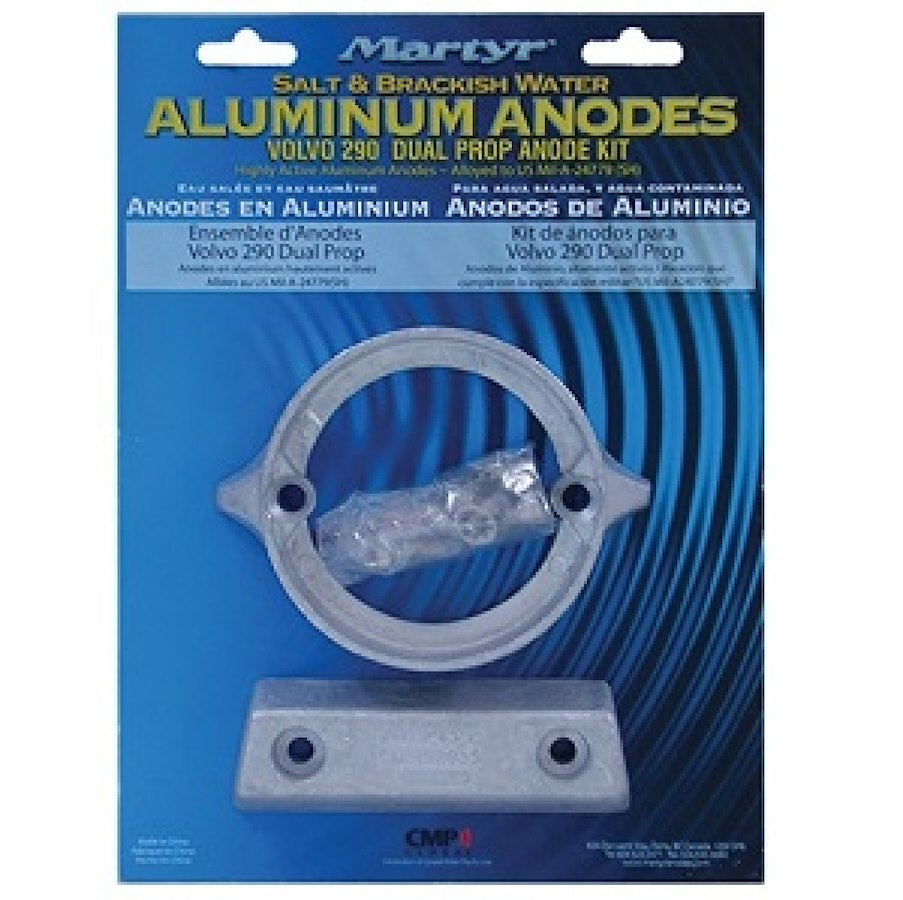 Kit anodi in alluminio Martyr per piede Volvo 290 Dual Prop. Composto da collare, barra e bulloni di fissaggio.