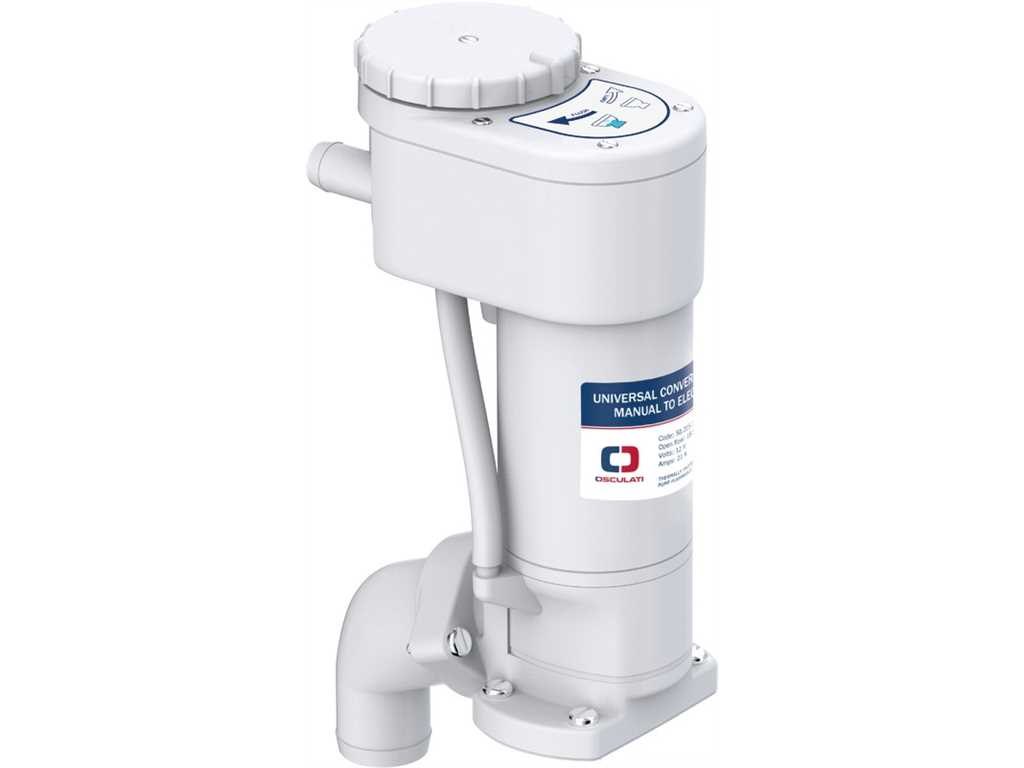 Kit completo per elettrificare wc manuali tipo Jabsco, Osculati, Matromarine, Jhonson pump, Ocean Technologies ed altre. Motore completo da sostituire alla pompa manuale. I tubi di carico e scarico rimangono invariati. Funziona sopra o sotto la linea di galleggiamento.