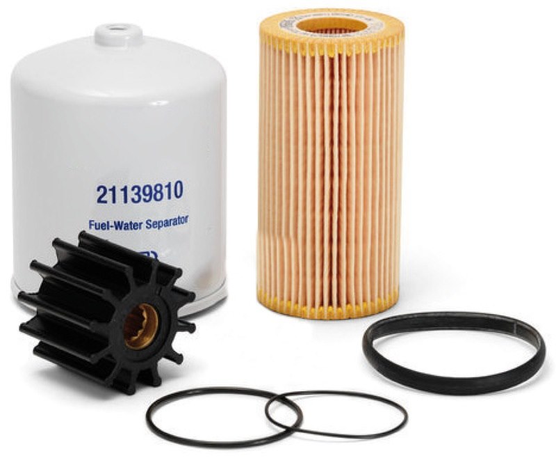 Kit manutenzione motori Diesel VOLVO. Formati da: filtro olio + filtro carburante + girante pompa acqua.