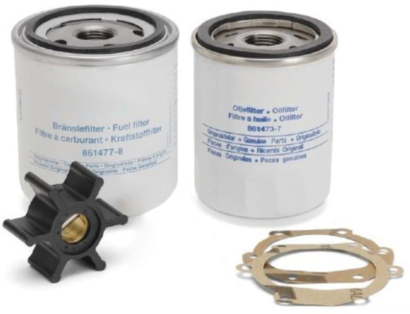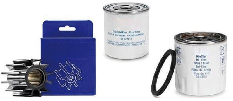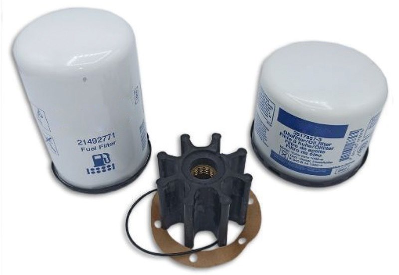 Kit manutenzione motori Diesel VOLVO. Formati da: filtro olio + filtro carburante + girante pompa acqua.