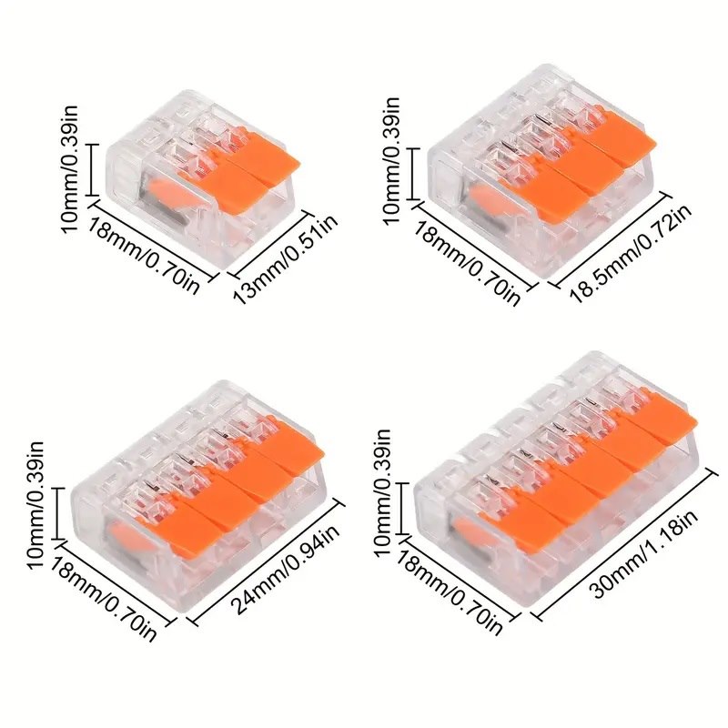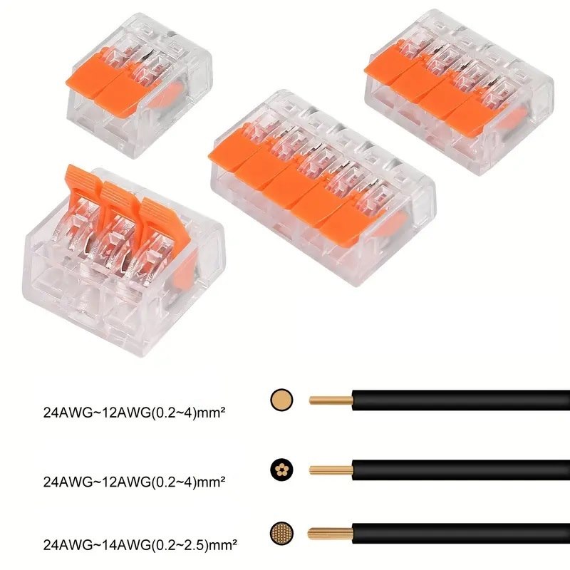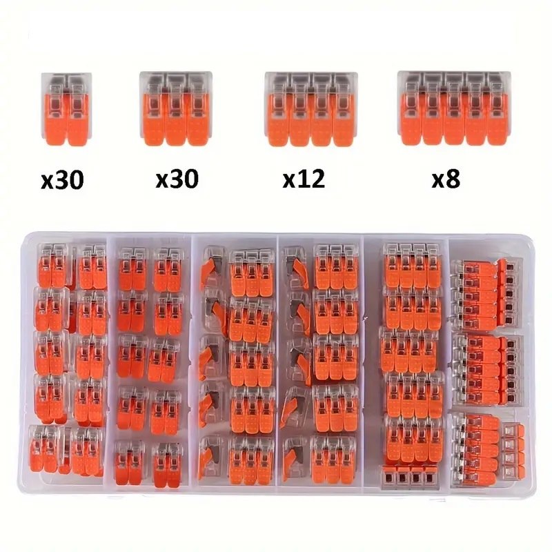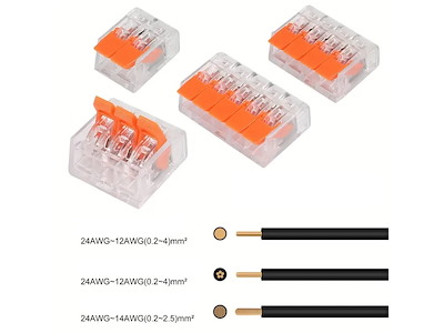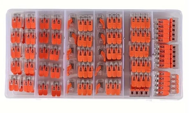 Kit valigetta composta da 80 morsetti di giunzione. Apertura e serraggio a scatto. Sono ideati per collegare conduttori rigidi, semi-rigidi e flessibili e sono facili da applicare: basta alzare la leva, inserire il conduttore e abbassare la leva. Garantiscono un impianto elettrico più veloce e un’installazione più sicura. 80 pezzi totali, composta da 20 pezzi da 2 ingressi + 30 da 3 + 12 da 4 + 8 da 5.