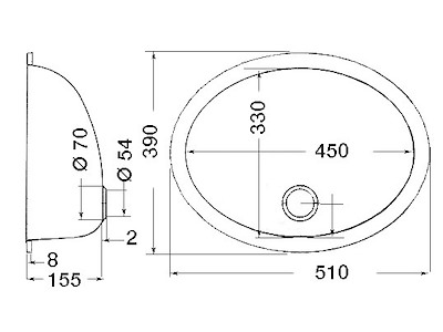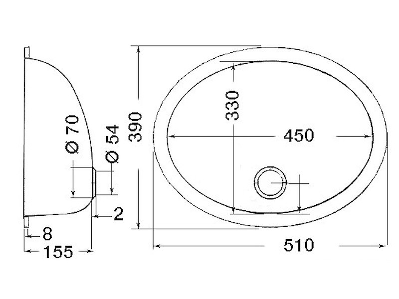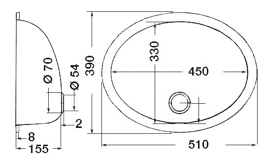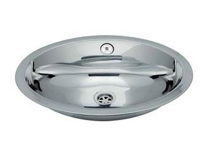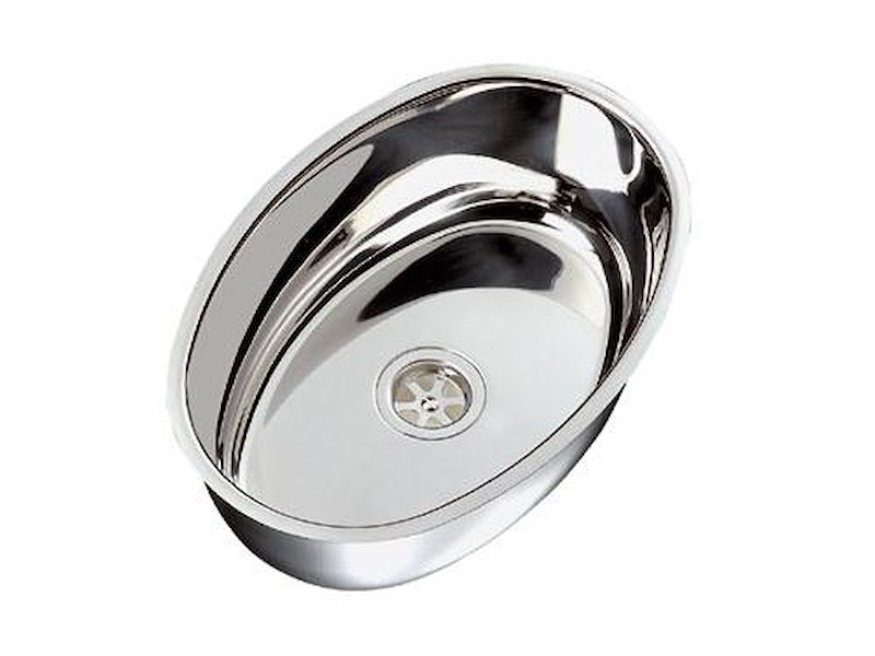 Lavello ovale per barca in acciaio inox lucidato a specchio con bordo tondo.