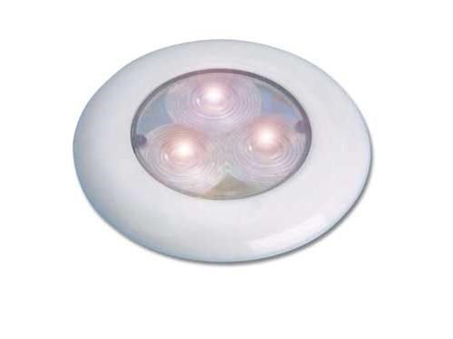 Luce di cortesia a led. Provvista di 3 led a luce bianca. Possibilità di montaggio sia ad incasso che esterna ( il modello con cornice inox montaggio solo ad incasso ) . Basso consumo.