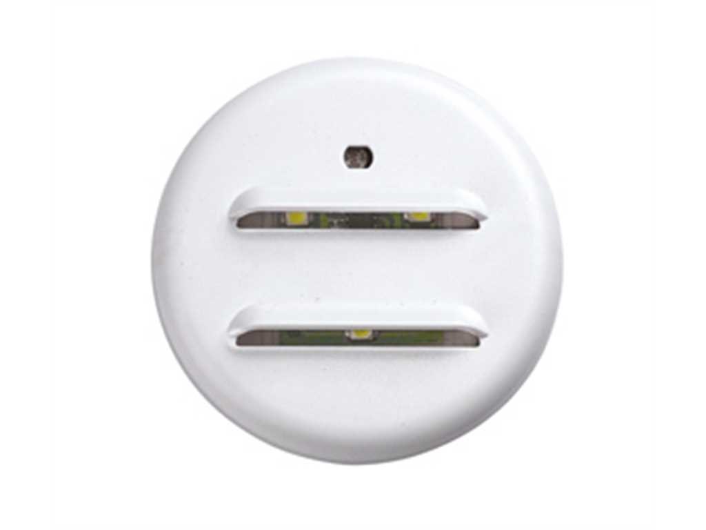 Luce di cortesia in policarbonato bianco a 3 LED a luce fredda. Si accende automaticamente al calare della notte. Montaggio a filo.