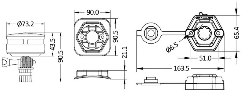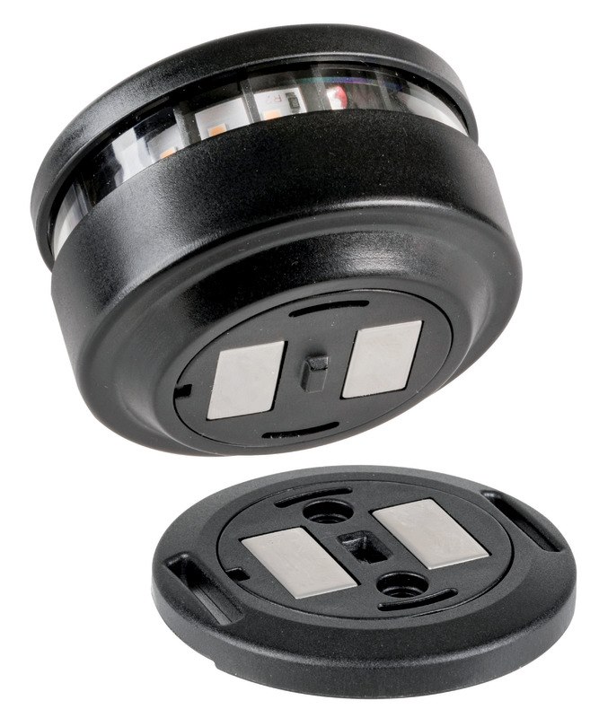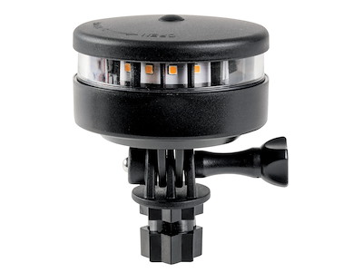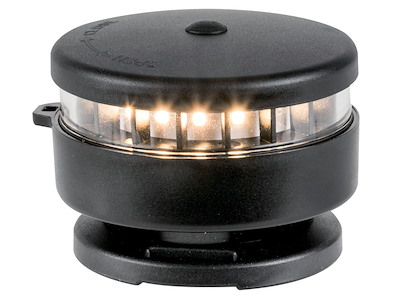 Luce di navigazione removibile. Modalità di funzionamento: luce fissa 360° (autonomia 10h), luce intermittente 360° (autonomia 16h).